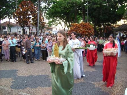 Há alguns anos na fetividade da cidade em comemoração o mdia da padroeira foi pedido que no ofertorio da missa cada empresa da cidade levasse o fruto